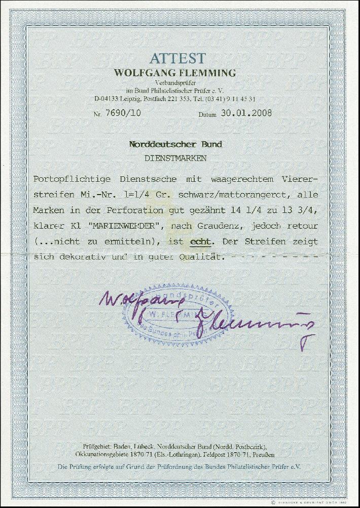 | Prüfgebiet: | Norddeutscher Postbezirk 1870 - 1871 Dienstmarken |