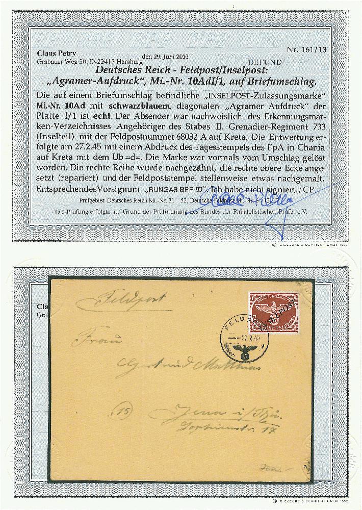 | Zusatzinformationen und Suchstichworte: | Feldpost II Weltkrieg Inselpost Nr. 10 Ad I71 Agramer Aufdruck |