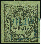 | Zusatzinformationen und Suchstichworte: | Heinrich Köhler 384. Auktion 19./20., 23. - 28. September 2024 Los 4154 Altdeutschland Oldenburg ⅓ Sgr. auf grün, sehr schön farbfrisch und voll- bis breitrandig, sauber entwertet durch Ra2 von Oldenburg. Tadellos. Ausruf 300,00 EUR |