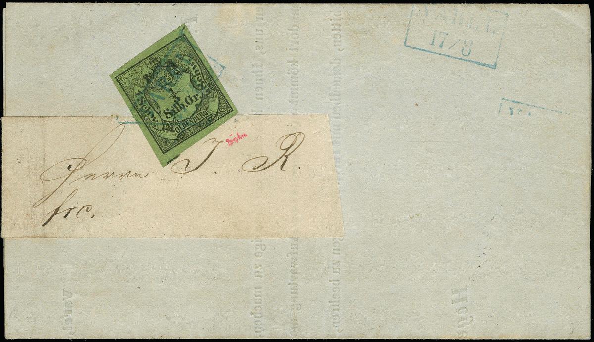 | Zusatzinformationen und Suchstichworte: | Heinrich Köhler 384. Auktion 19./20., 23. - 28. September 2024 Los 4155 Altdeutschland Oldenburg ⅓ Sgr. auf gelbgrün, allseits breit- bis überrandig, unten mit Teil der Nachbarmarke, farbfrisch, mit sauber auf- und nebengesetztem Ra2 "VAREL 17/8" (1855) auf vollständiger Drucksache mit teil der Schleife. Einwandfreie und frische Erhaltung. Ausruf 500,00 EUR |