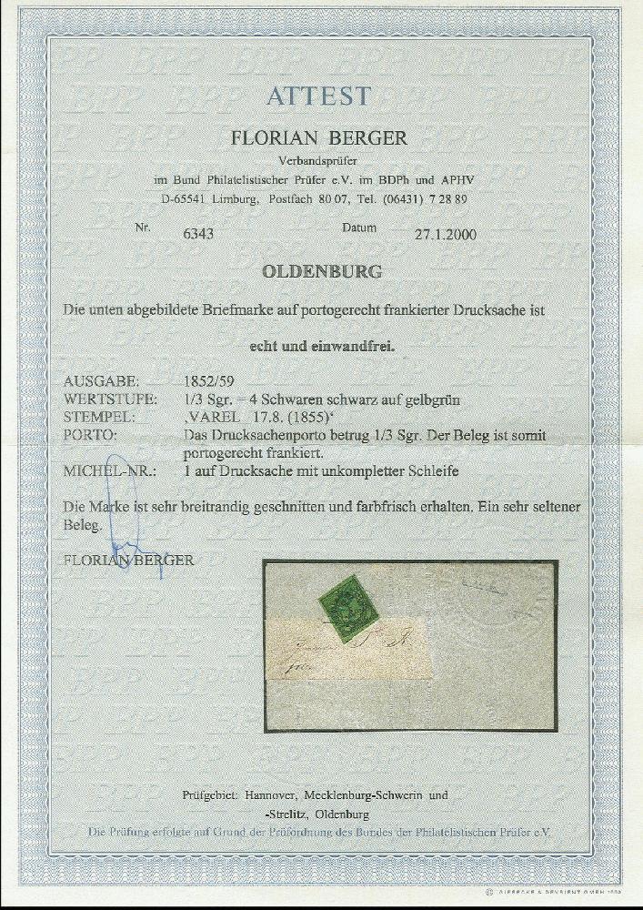 | Prüfer: | Berger, Florian (BPP (Bund Philatelistischer Prüfer)) |