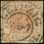 | Zusatzinformationen und Suchstichworte: | Heinrich Köhler 384. Auktion 19./20., 23. - 28. September 2024 Los 4191 Altdeutschland Sachsen 3 Pfg. rot, Platte V, Type 5, in tiefer frischer Farbe, voll- bis sehr breitrandig, sauber entwertet durch DKr. von Leipzig. In der oberen Randlinie unmerklicher kleiner Randspalt, sonst einwandfrei. Ausruf 1.000,00 EUR |