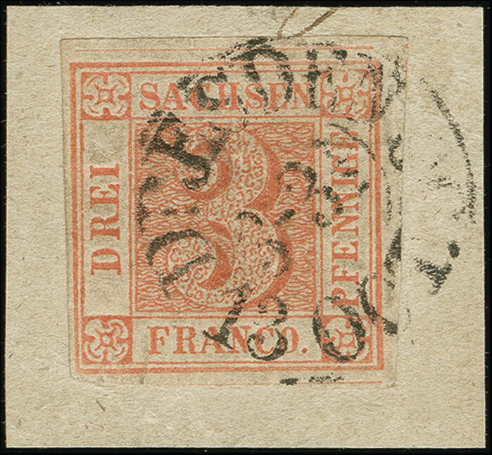 | Zusatzinformationen und Suchstichworte: | Heinrich Köhler 384. Auktion 19./20., 23. - 28. September 2024 Los 4193 Altdeutschland Sachsen 1850, 3 Pfg. lebhaftrot, Platte III, Type 9, farbfrisch und allseits voll- bis breitrandig mit vollen Trennlinien oben und unten, sauber mit DKr. “DRESDEN 13 OCT 50 3-3½ ” auf Briefstück, nicht ursprünglich haftend, zwei unaufällige Risschen, ein optisch sehr attraktives Stück mit sehr deutlichen Buchdruckmerkmalen, Ausruf 500,00 EUR |
