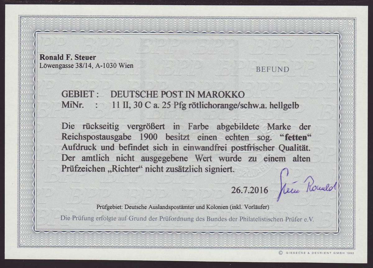 | Prüfer: | Steuer, Ronald F. (BPP (Bund Philatelistischer Prüfer)) |