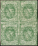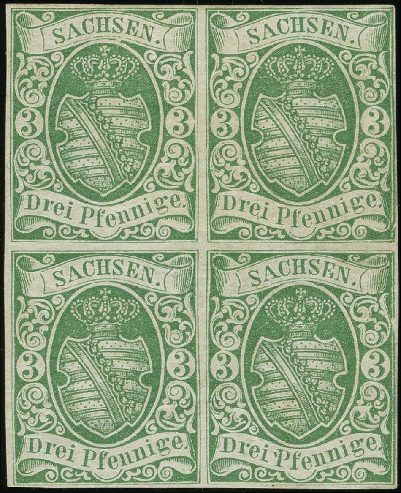 | Zusatzinformationen und Suchstichworte: | Heinrich Köhler 384. Auktion 19./20., 23. - 28. September 2024 Los 4195 Altdeutschland Sachsen 1851, 3 Pfg. saftiggrün im 4er-Block, farbfrisch und vollrandig geschnitten, sauber ungebraucht, die unteren Marken kleiner gummifreier Streifen, Gummi gering verstrichen, rechte untere Marke kleiner Eckbug, sonst tadellos, selten Ausruf 250,00 EUR |