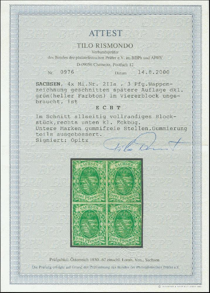 | Prüfer: | Rismondo, Tilo (BPP (Bund Philatelistischer Prüfer)) |