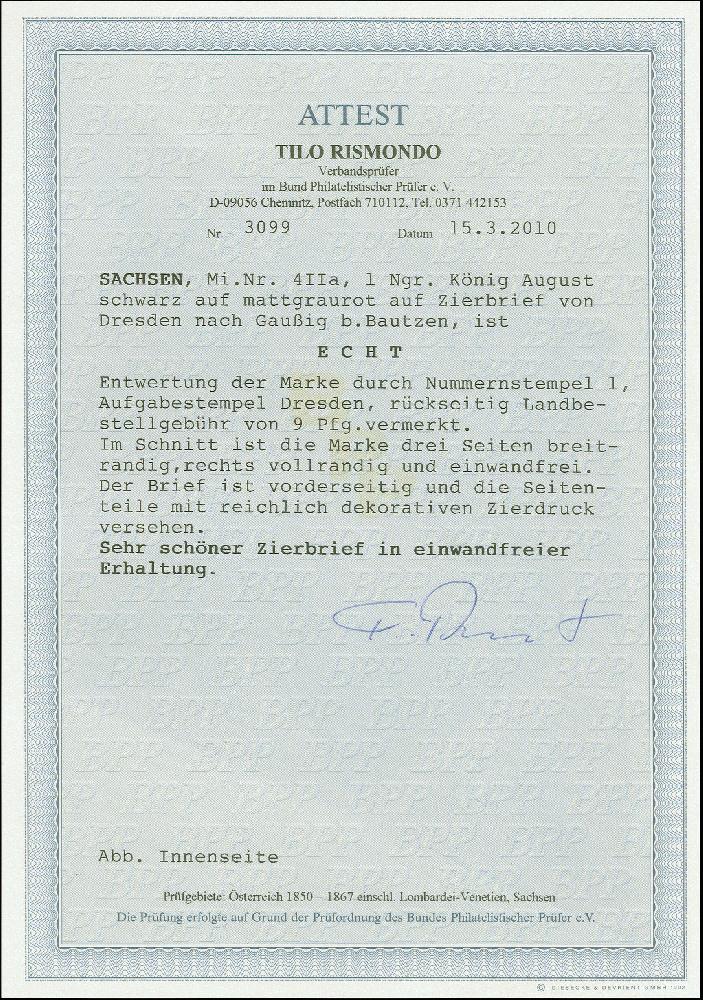 | Prüfer: | Rismondo, Tilo (BPP (Bund Philatelistischer Prüfer)) |