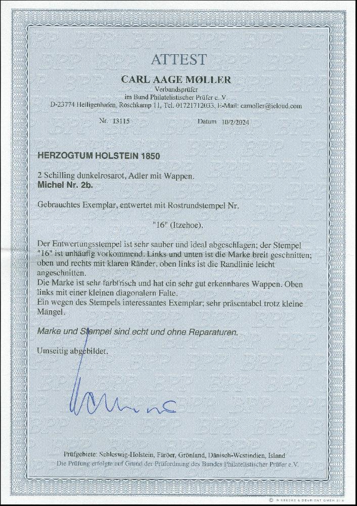 | Prüfer: | Möller, Carl Aage (BPP (Bund Philatelistischer Prüfer)) |