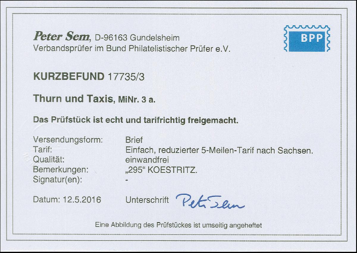 | Prüfgebiet: | Altdeutschland Thurn und Taxis |
