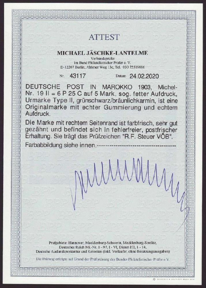 | Prüfgebiet: | Deutsche Auslandspostämter Marokko |