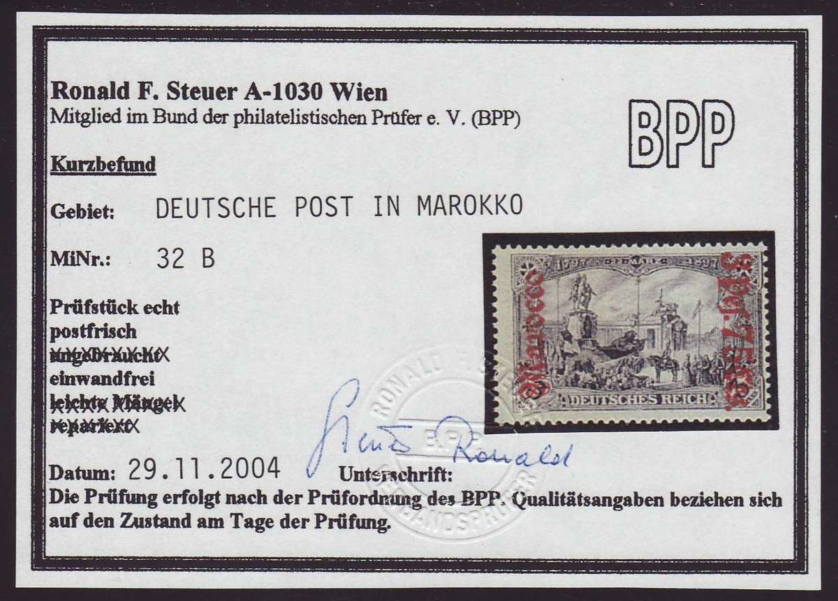 | Prüfgebiet: | Deutsche Auslandspostämter Marokko |