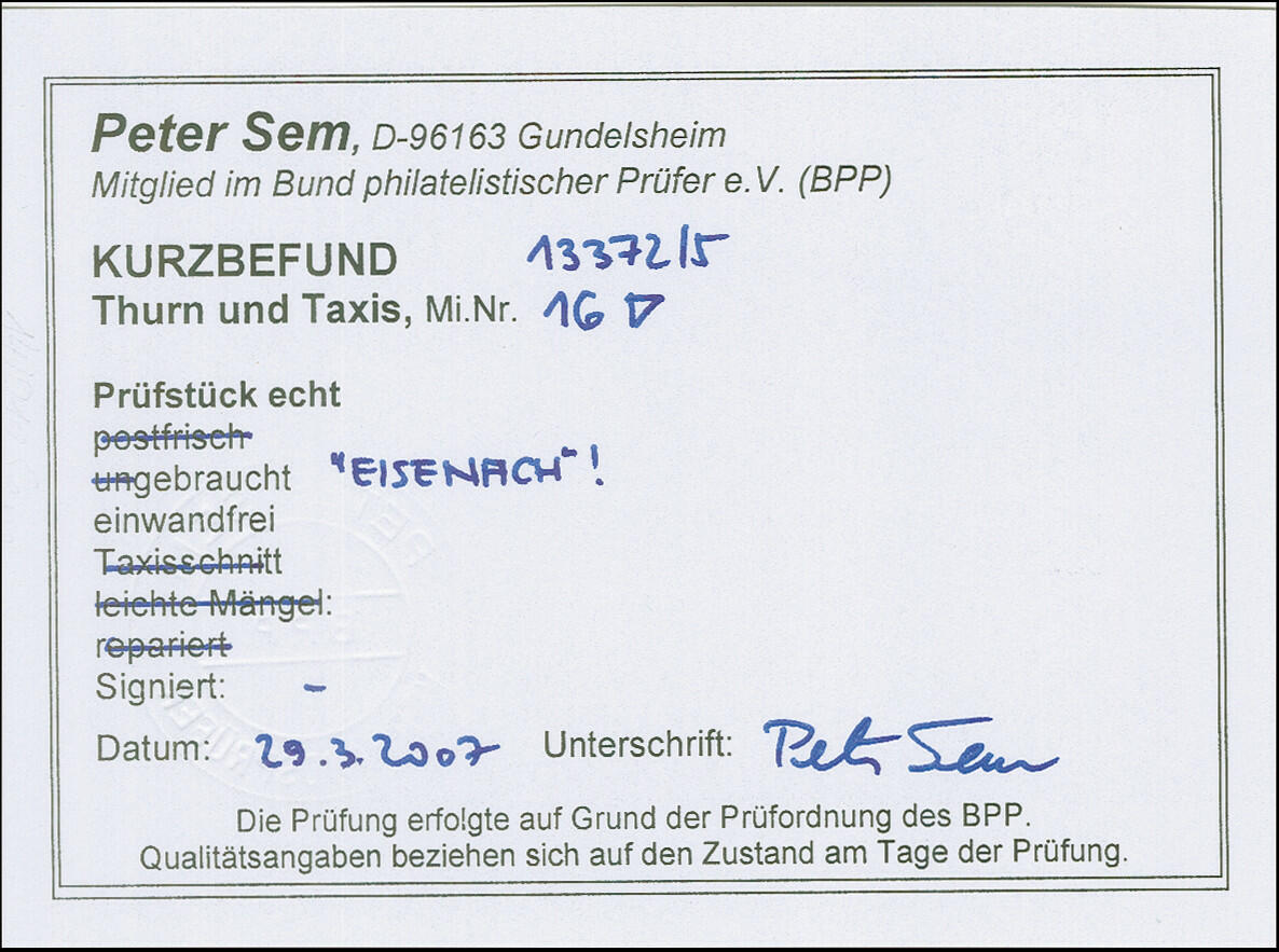 | Prüfgebiet: | Altdeutschland Thurn und Taxis |