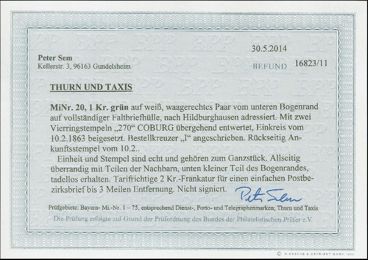 | Prüfgebiet: | Altdeutschland Thurn und Taxis |
