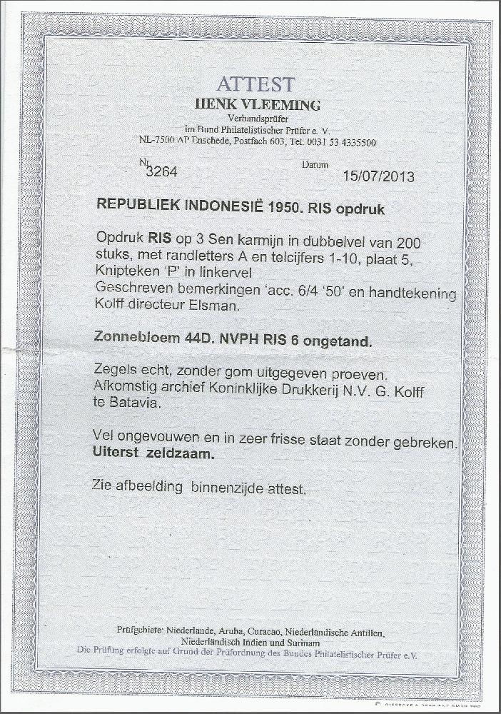 | Prüfer: | Vleeming, Henk (BPP (Bund Philatelistischer Prüfer)) |