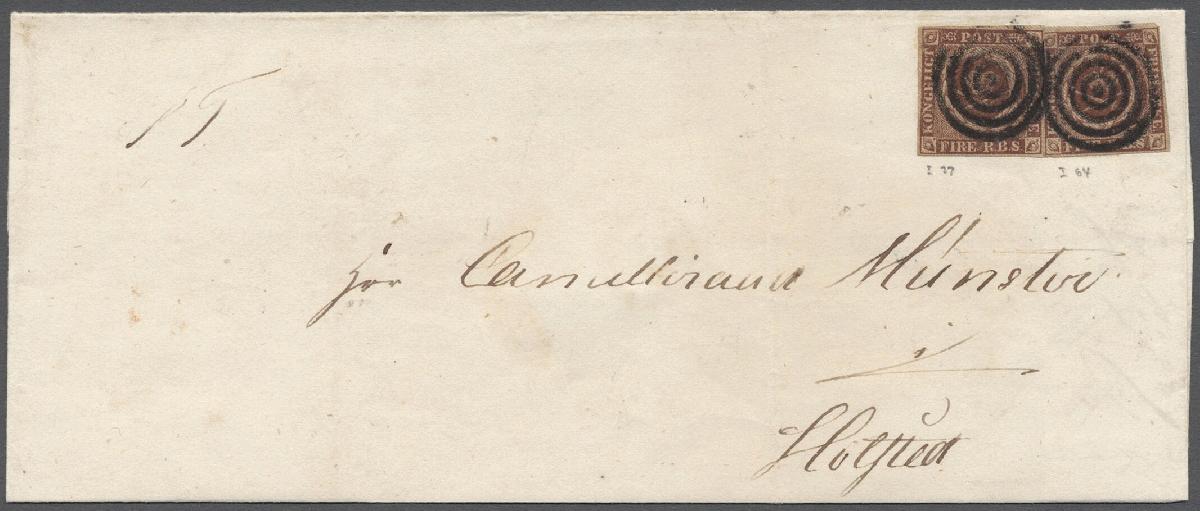 | Zusatzinformationen und Suchstichworte: | Christoph Gärtner 60. Auktion 14. - 18. Oktober 2024 Los 4735 Dänemark 1851, 4RBS, Ferslew, Platte I, Feld 37 und 64. 2 Stück auf Faltbrief 2. Gewichts-klasse, beide mit 4-Ring Stummstempel entwertet ohne Abfertigungsstempel. seltene Einheit. Ausruf 150,00 EUR |