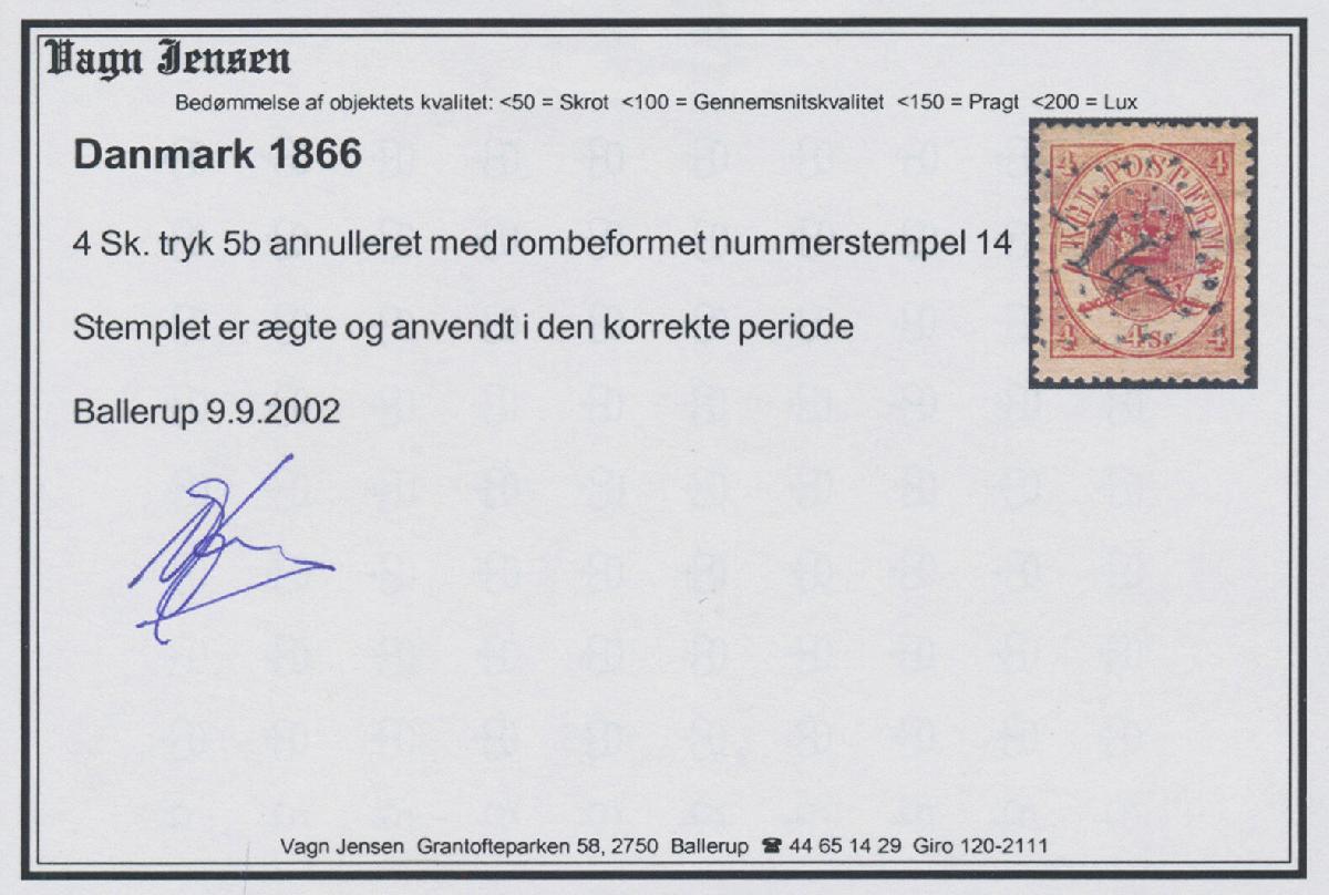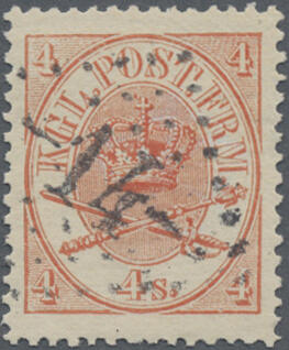 | Zusatzinformationen und Suchstichworte: | Christoph Gärtner 60. Auktion 14. - 18. Oktober 2024 Los 4839 Dänemark 1866,4 SK rot, entwertet durch selten, experimentellen Punktnummernstempel rhombe "14" . Dieses Stempel ist nur gebraucht für einen kurzen Zeitraum am Kobmagergades Postkontor in Kopenhagen und ist daher äußerst selten. Ausruf 350,00 EUR |