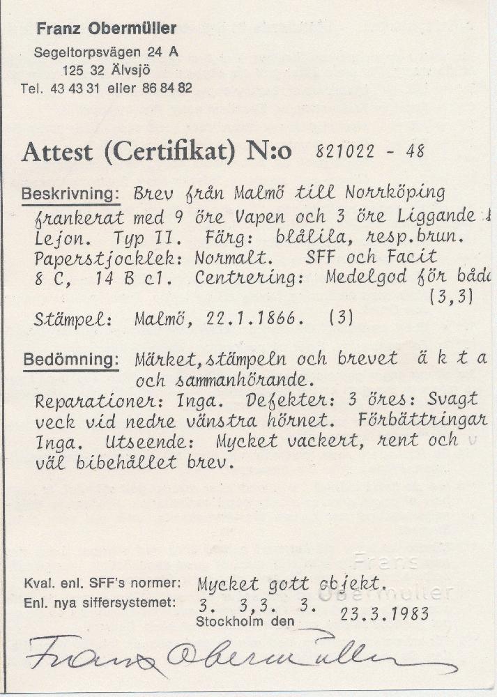 | KatalogNr: | Facit 8 C; 14 B c1 |