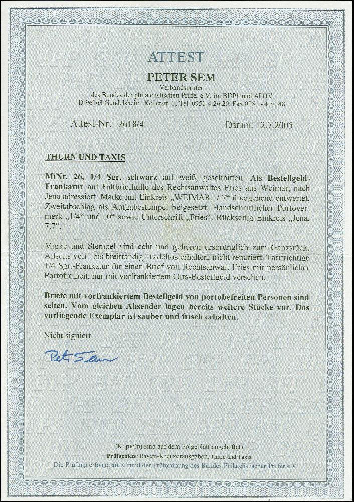 | Prüfgebiet: | Altdeutschland Thurn und Taxis |
