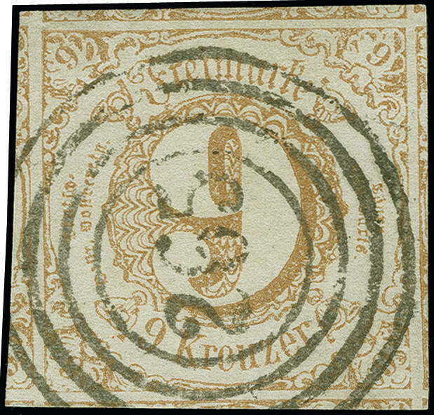 | Zusatzinformationen und Suchstichworte: | Heinrich Köhler 384. Auktion 19./20., 23. - 28. September 2024 Los 4274 Altdeutschland Thurn und Taxis 9 Kr. ockerbraun, allseits überrandig, mit Teilen aller Nachbarmarken (sogen. 'Kleiner 9er-Block'), sauber entwertet durch Nr. "265" SONNEBERG. Tadellos. Ausruf 150,00 EUR |