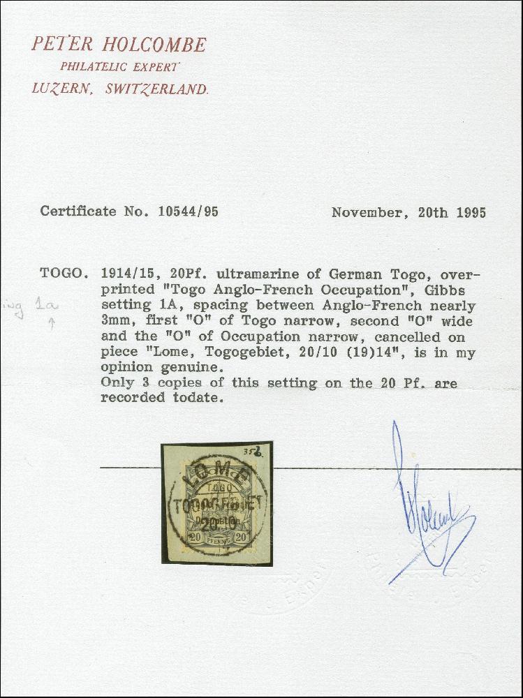 | Prüfgebiet: | Deutsche Kolonien Togo Britische Besetzung |