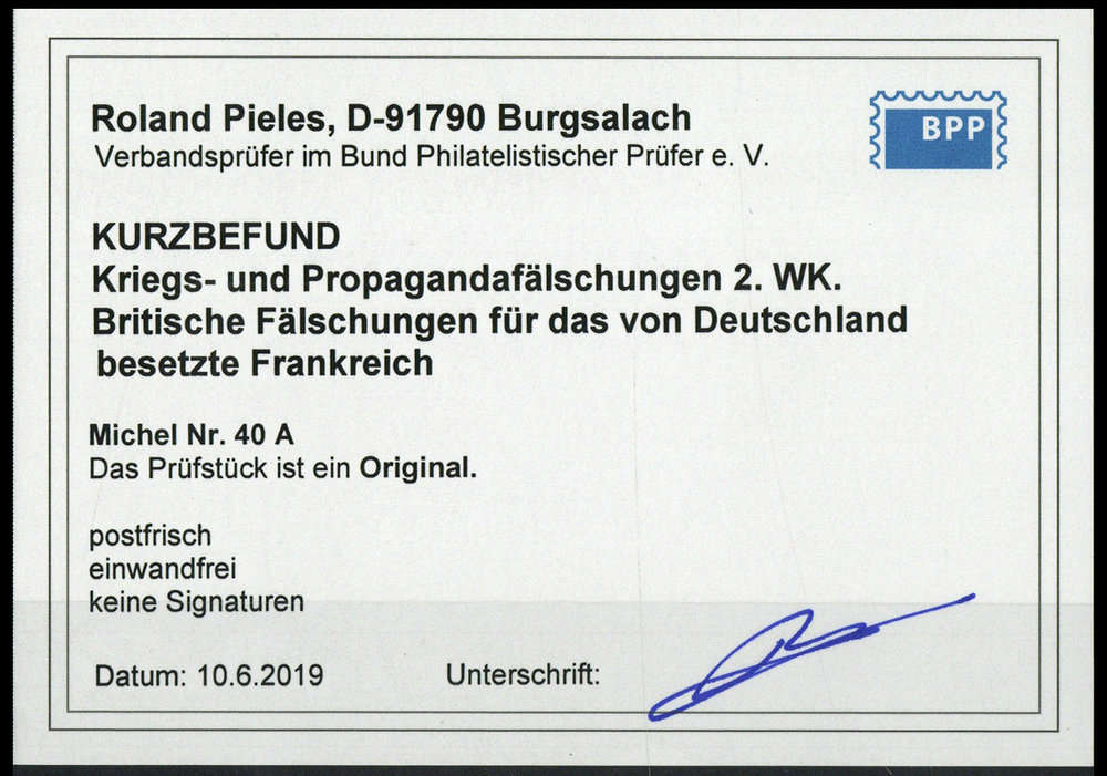 | Prüfgebiet: | Deutsches Reich Kriegs- und Propagandafälschungen 1939-1945 |