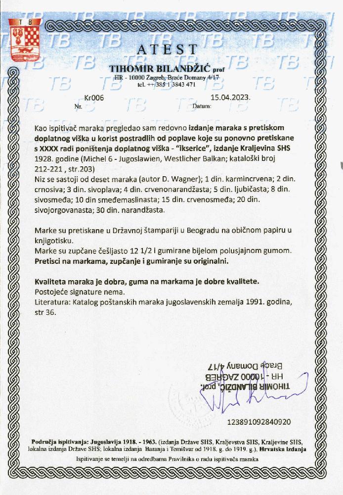 | Prüfer: | Bilandžić, Tihomir (HFS (Hrvatski Filatelistički Savez)) |