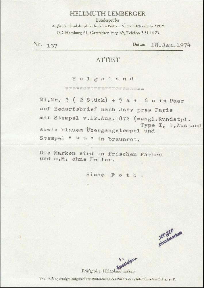 | Prüfgebiet: | Altdeutschland Helgoland |