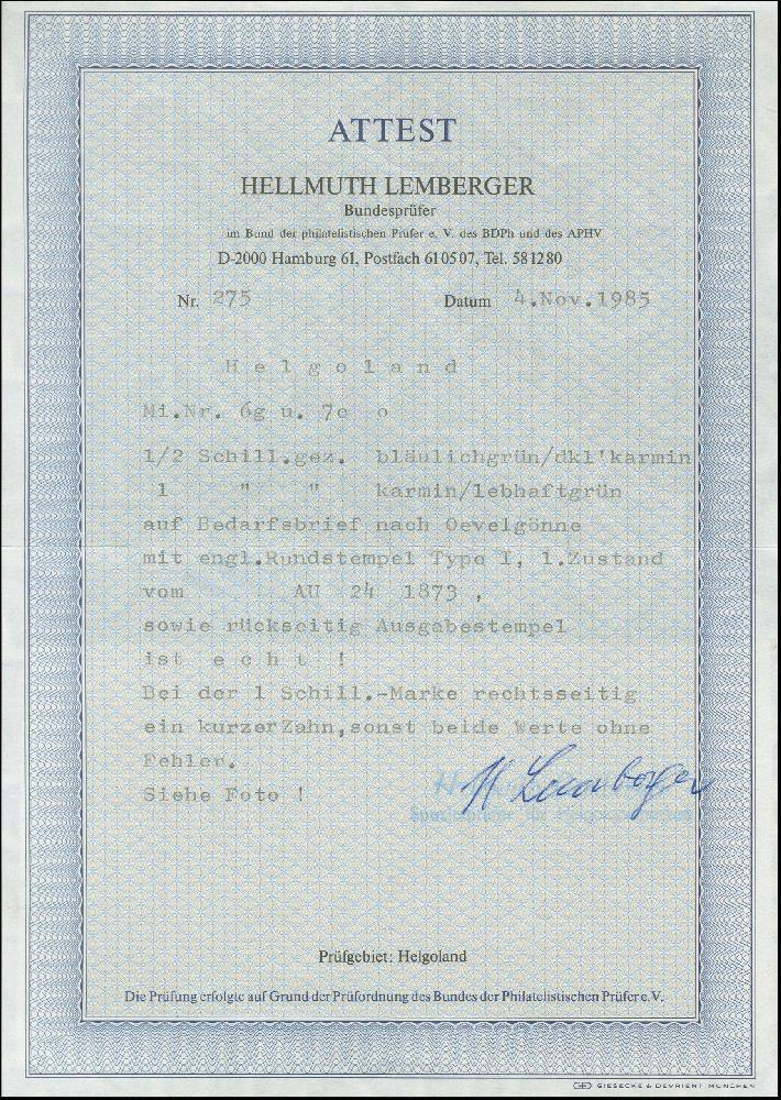 | Prüfer: | Lemberger, Hellmuth (BPP (Bund Philatelistischer Prüfer)) |