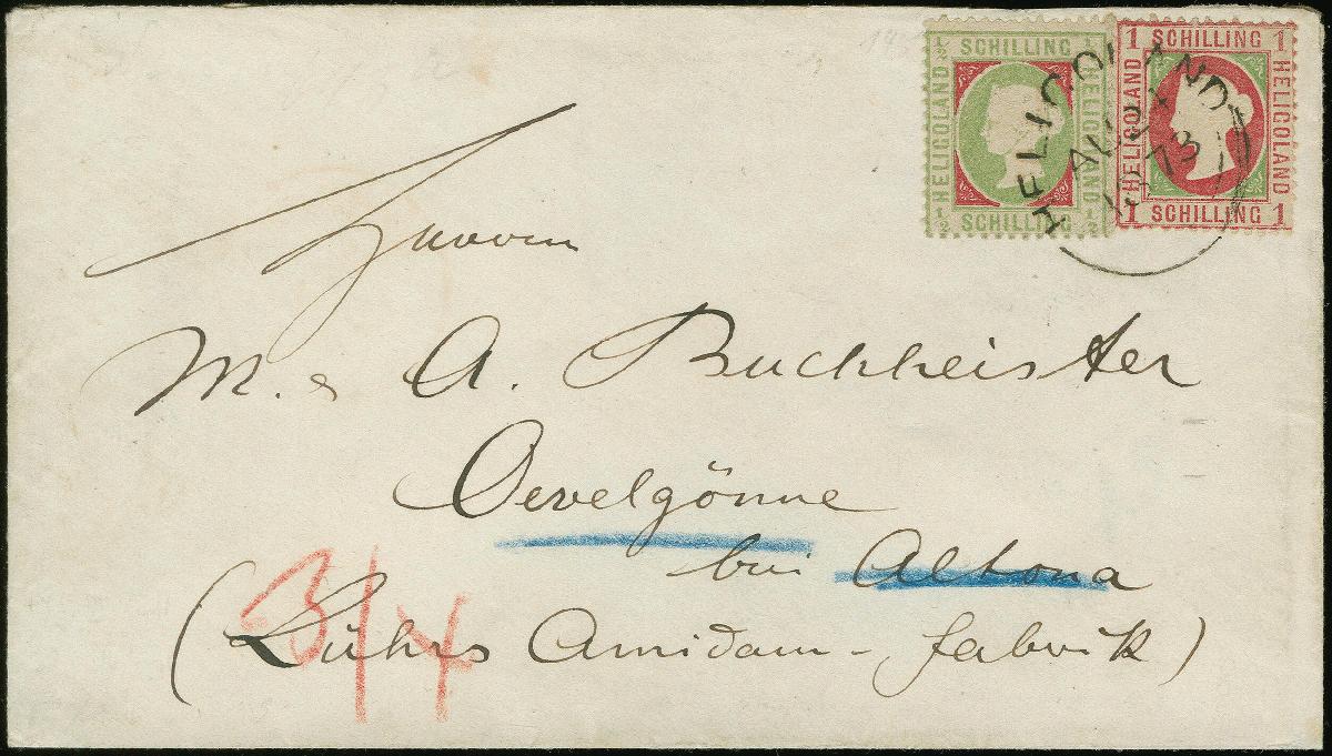 | Zusatzinformationen und Suchstichworte: | Heinrich Köhler 384. Auktion 19./20., 23. - 28. September 2024 Los 7079 Altdeutschland Helgoland 1869, ½ Schilling bläulichgrün/dunkelkarmin zusammen mit 1 Schilling karmin/lebhaftgelblichgrün, je farbfrisch und meist gut gezähnt, sauber mit Kreisbogenstempel “HELIGOLAND AU 24 1873” auf weißem Briefkuvert nach Oevelgönne bei Altona, die 1 Schilling unten rechts ein kurzer Zahn, sonst tadellos und sehr attraktiv Ausruf 1.000,00 EUR |