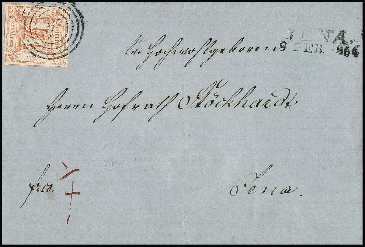 | Zusatzinformationen und Suchstichworte: | Rauhut & Kruschel - 228. Auktion 18. - 19. Oktober 2024 Los 4218 Altdeutschland Thurn und Taxis 1/4 Sgr. rotorange, aussergewöhnlich breit geschnittenes Luxusstück mit Teilen von sechs Nebenmarken auf Ortsbrief von Jena Ausruf 150,00 EUR |