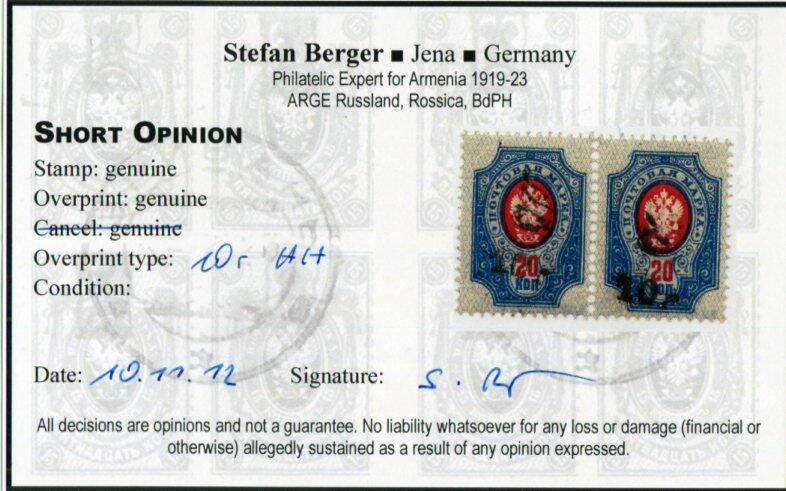 | Zusatzinformationen und Suchstichworte: | Balkanphila - Webshop 2019 NEU Los 24181 Armenien Armenia: 1920 (March-November). 20k Russian arms hand stamped 10R and HH Monogram in black unmounted mint pair. Festpreis 140,00 BGP |