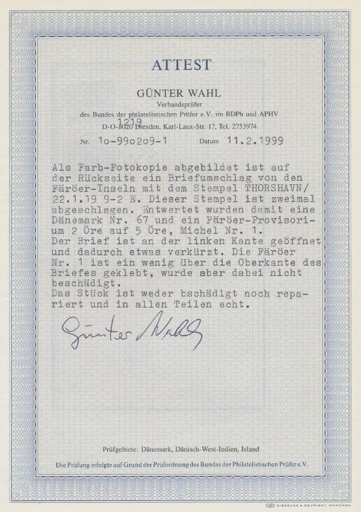 | Prüfer: | Wahl, Günter (BPP (Bund Philatelistischer Prüfer)) |