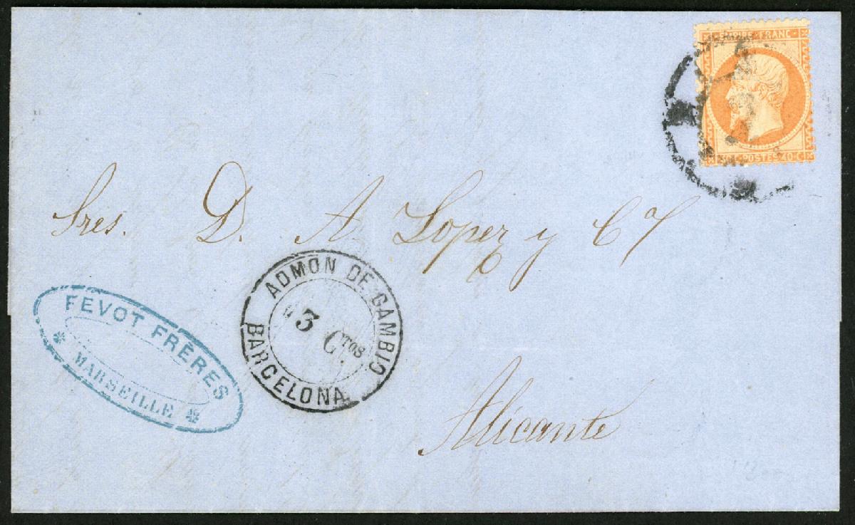 | Zusatzinformationen und Suchstichworte: | Klüttermann - 8. Auktion 25. Juli - 2. August 2024 Los 11678 Frankreich 40 C. orange auf Kab-Brief aus Marseille nach Alicante mit Entwertung durch spanischen Stempel und Durchg.-Stempel von Barcelona Ausruf 100,00 EUR |
