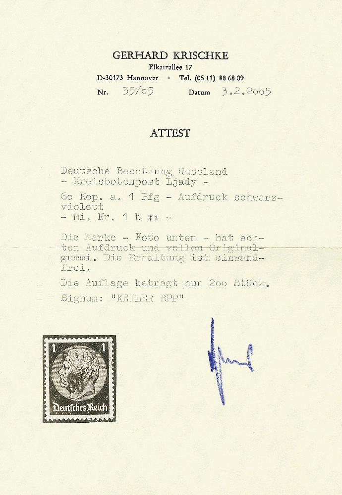 | Prüfgebiet: | Deutsche Besetzung WK 2 Russland Ljady |