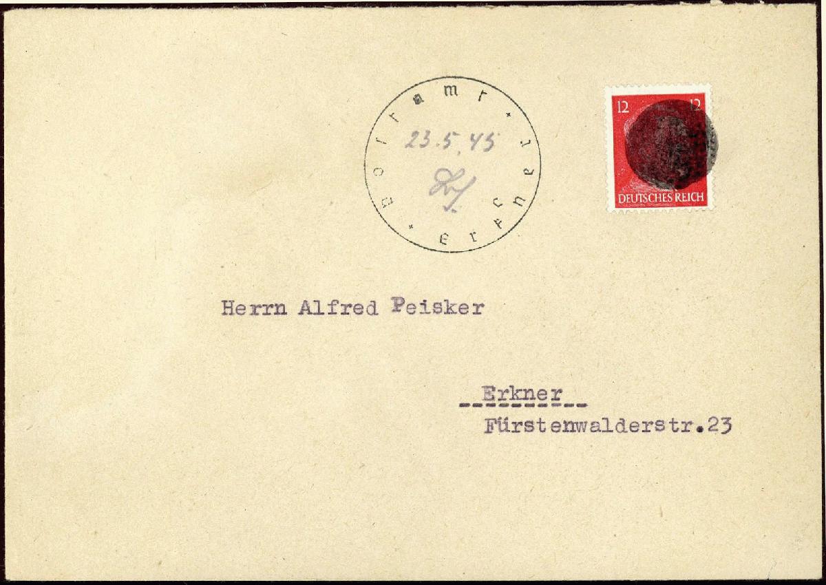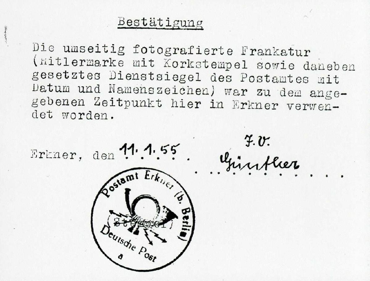 | Zusatzinformationen und Suchstichworte: | Veuskens 125. Auktion 5. September 2024 Los 1822 Deutsche Lokalausgaben Erkner 12 Pf. Hitler mit lokaler Schwärzung 1945, auf Ortsbrief vom 23.5.45, sog. 'Peisker-Beleg', mit Kopie der Echtheitsbestätigung des Postamtes Erkner, Pracht. Ausruf 150,00 EUR |