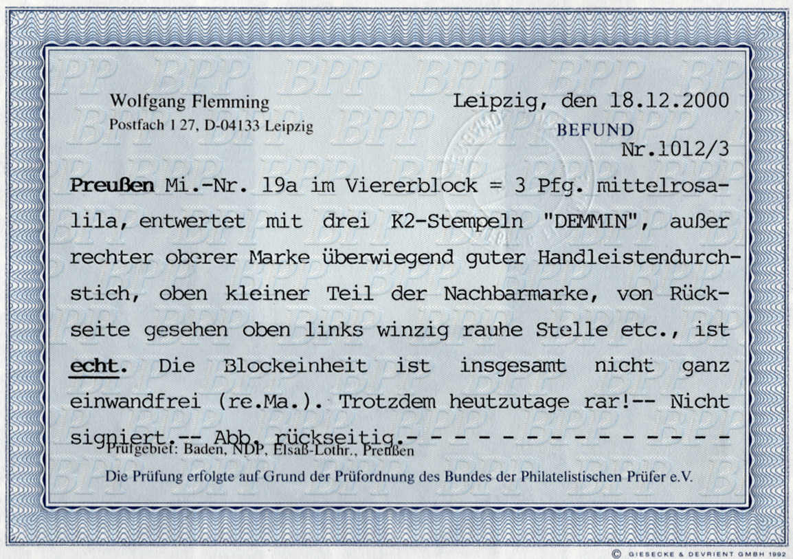 | Prüfer: | Flemming, Wolfgang (BPP (Bund Philatelistischer Prüfer)) |