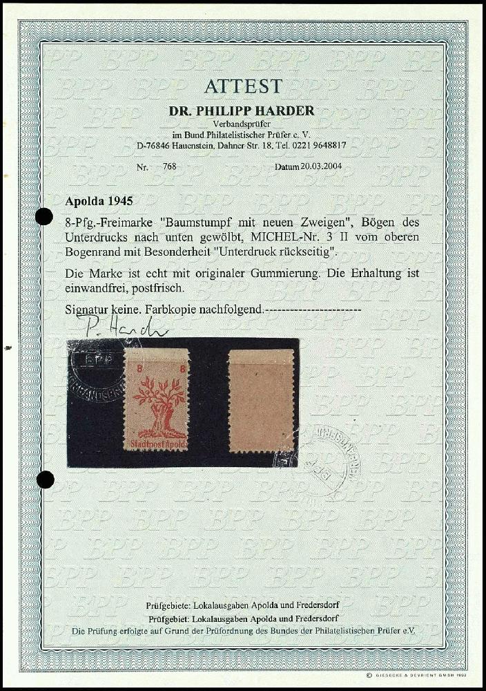 | Prüfgebiet: | Deutsche Lokalausgaben 1945 Apolda |
