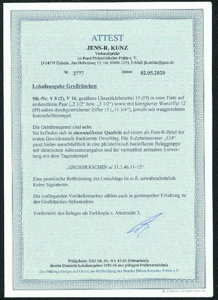 | Prüfgebiet: | Deutsche Lokalausgaben 1945 Großräschen |