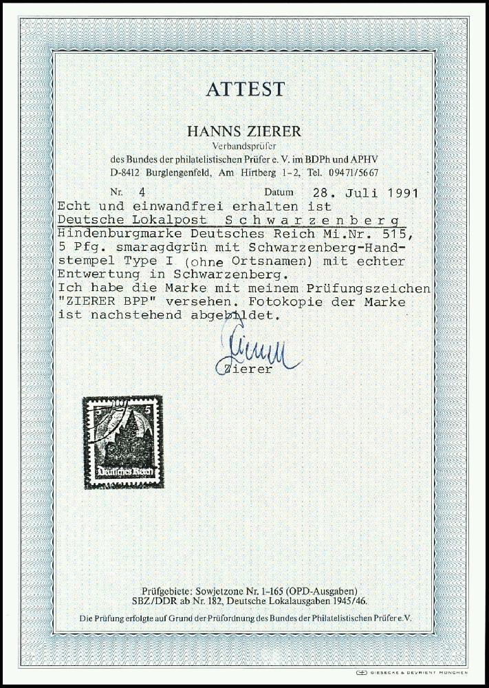 | Prüfgebiet: | Deutsche Lokalausgaben 1945 Schwarzenberg |
