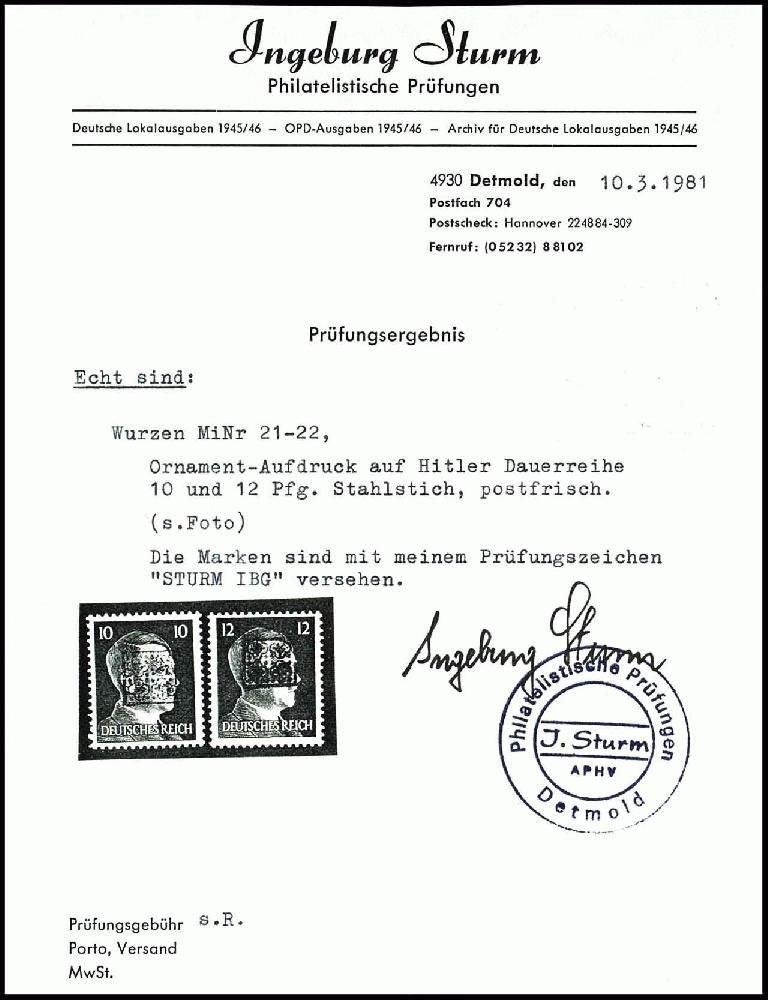 | Prüfgebiet: | Deutsche Lokalausgaben 1945 Wurzen |