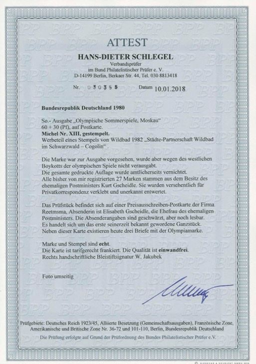 | Prüfer: | Schlegel, Hans-Dieter (BPP (Bund Philatelistischer Prüfer)) |