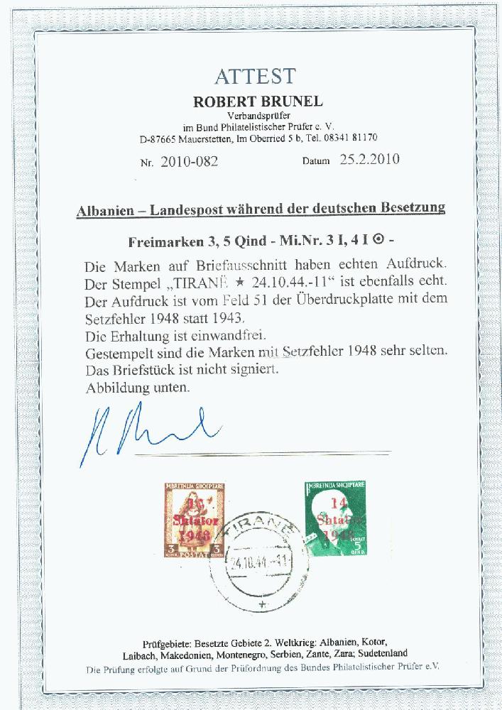| Prüfgebiet: | Deutsche Besetzung WK 2 Albanien Landespost |