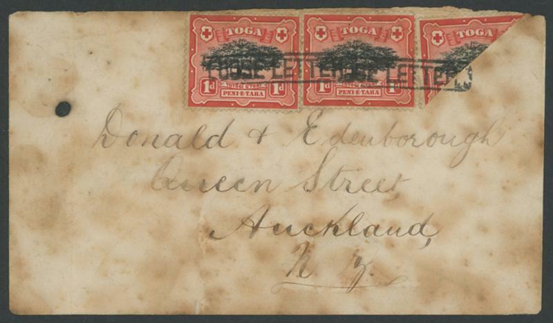 | Zusatzinformationen und Suchstichworte: | 257. Abacus Auktion 27. - 30. August 2024 Los 2298 Tonga Postgeschichte: 1898 (zirka) Geschäftsbrief zu Auckland mit 1897 Sondermarken 1d x 3 (ein halbierte für die richtiger 2½d Taxierung) entwertet mit Rahmen lose Schiffsbrief Handstempel von Auckland aber ungewöhnlicher ohne zugehöriger Kreisdatumsstempel, schlecht getönt. Gibbons aufführen Halbierungen für mehrere tongaisch Briefmarken aber nicht für diese Ausgabe. RPSof L Attest (2023) besagt "echt" Zuschlag 320,00 AUD |