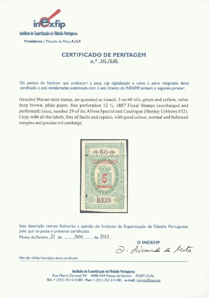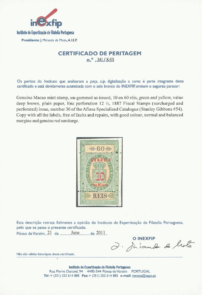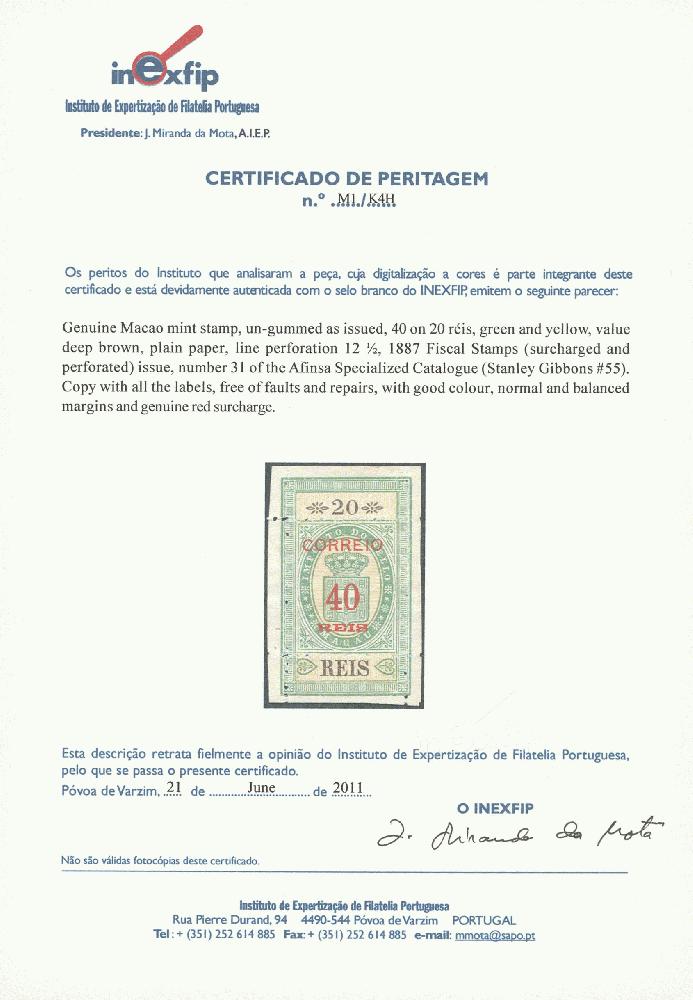 | Zusatzinformationen und Suchstichworte: | Ulrich Felzmann 40. e@uction 10. - 11. September 2024 Los 12557 Macau 1887, Coat of Arms, complete set with all labels attached, no gum as issued, the labels on the outside of the perforation were usually removed, copies with full labels are rare, very fine and attractive set, foto certificates by Inexfip Ausruf 100,00 EUR |