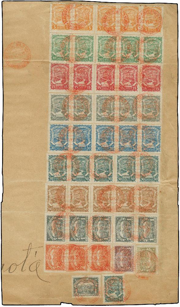 | Zusatzinformationen und Suchstichworte: | Heinrich Köhler 384. Auktion 9./20., 23. - 28. September 2024 Los 1759 Scadta 1923,5 c.- 1 p. Jede in Fünferstreifen, jeweils 6 Exemplaren von 50 c. und 1 p. Nebst 5 p. 3 p. Und 2 p. Die später in Dreierstreifen, entwertet mit rotem Datumsstempel von 25,6,1923 zu große Paket Stück. Kleine Mängel aber hervorragend und einzigartig Ausruf 2.500,00 EUR |