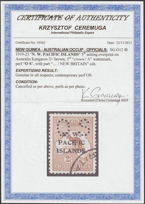 | Zusatzinformationen und Suchstichworte: | Status International Auktion 391 5. September 2024 Los 3024 Neuguinea 1919-23 Überdruck Känguruh Überdruck 2/- braun, drittes Wasserzeichen, fünfter Fassung Zähnung OS. Gestempelt, Pracht mit Teil Rabaul Kreisdatumsstempel. SG Katalogwert £400. selten echt. 2013 Ceremuga AIEP Fotoattesten (P) (Schätzpreis 450 A$) Ausruf 300,00 AUD |