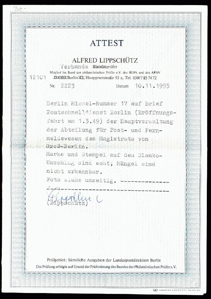 | Prüfer: | Lippschütz, Alfred (BPP (Bund Philatelistischer Prüfer)) |