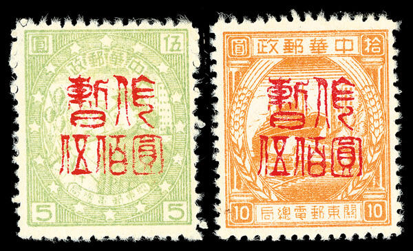 | Zusatzinformationen und Suchstichworte: | Kelleher & Rogers - 44. Auktion 11. - 12. Oktober 2024 Los 1170 China VR Kuantung Halbinsel 1948, zweiter Aufdruck auf Kwantung gibt auf, Kommunikationen design, Aufdrucke in rot, $500 auf $5 hellgrün nicht ausgegeben und $500 auf $10 gelborange (Yang AD67-68), gut zentriert mit vollständiger Zähnung, wunderbar frisch, postfrische; die erste hat kleines Farbstift Vermerk auf der Rückseite und der zweite hat Bleistiftnummern auf der Rückseite, Pracht, mit 1979 Hasegawa Attest Ausruf 2.600,00 HKD |