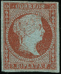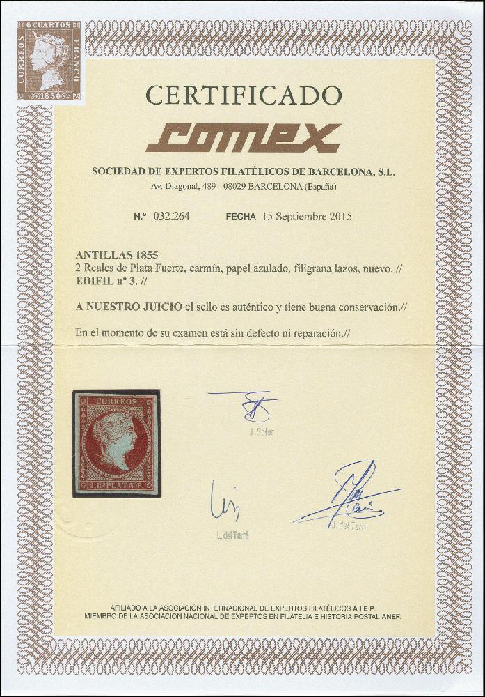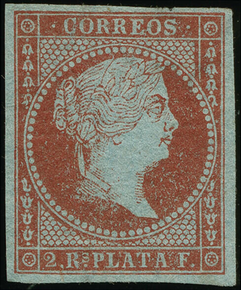 | Zusatzinformationen und Suchstichworte: | Heinrich Köhler 384. Auktion 19./20., 23. - 28. September 2024 Los 1478 Spanisch Westindien 1855, Isabella II. 2 r. karmin auf bläulichem Papier, farbfrisch und gute Ränder, ohne Gummi, fein, Attest Comxe (2015) Zuschlag 100,00 EUR |