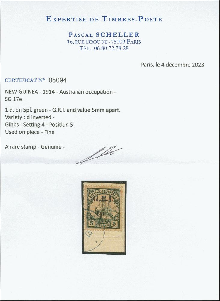 | Prüfgebiet: | Deutsche Kolonien Deutsch-Neuguinea Britische Besetzung |